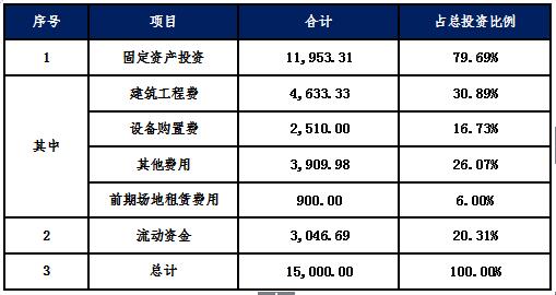 項目總投資估算為15,000.00萬元。