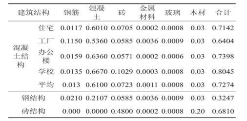 表3-1 建筑物拆除垃圾廢物組成及含量 m3/m2