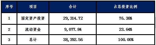 項(xiàng)目總投資估算為38,392.56萬元。
