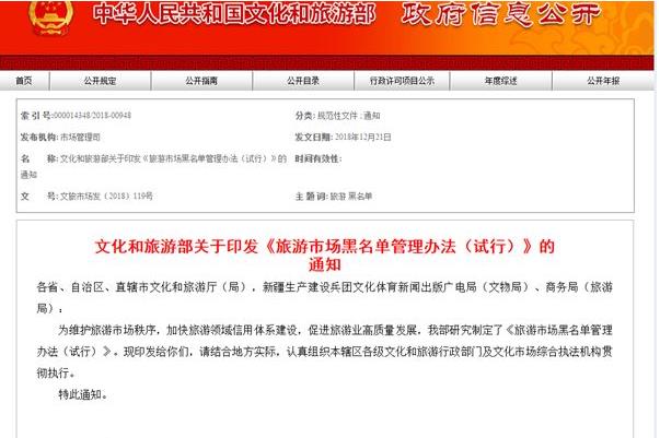 為維護旅游市場秩序,加快旅游領域信用體系建設,促進旅游業(yè)高質量發(fā)展,近日,文化和旅游部印發(fā)《旅游市場黑名單管理辦法(試行)》(以下簡稱《辦法》)?!掇k法》針對旅游市場秩序出現(xiàn)的新情況新問題和市場監(jiān)管的新要求,立足文化和旅游行業(yè)管理職能...