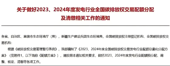 為切實做好全國碳排放權(quán)交易市場(以下簡稱強制碳市場)2023、2024年度發(fā)電行業(yè)配額分配相關(guān)工作,根據(jù)《碳排放權(quán)交易管理暫行條例》,在廣泛征求社會各方意見的基礎(chǔ)上,生態(tài)環(huán)境部印發(fā)實施了《2023、2024年度全國碳排放權(quán)交易發(fā)電行業(yè)配額總量和分...