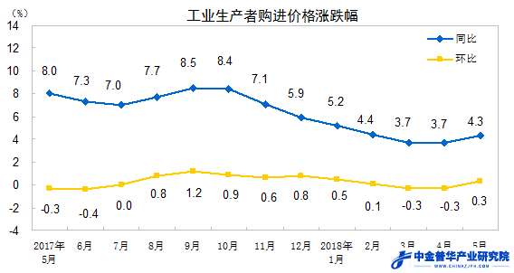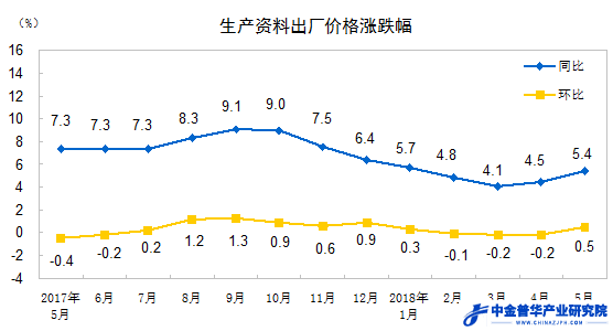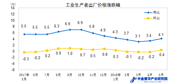 2018年5月份工業(yè)生產(chǎn)者出廠價格同比上漲4.1%